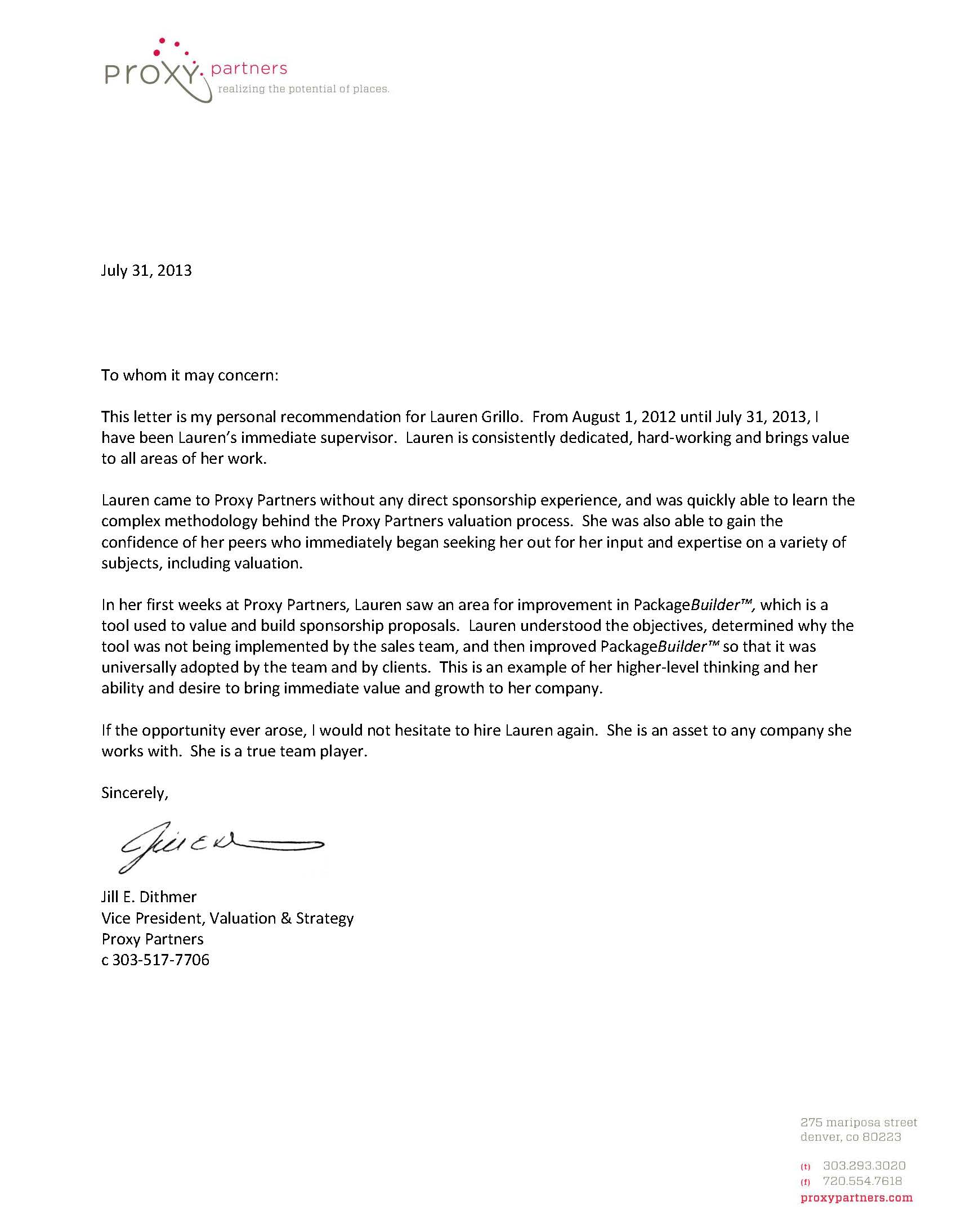 From Jill Dithmer, VP and my direct supervisor at Proxy Partners: